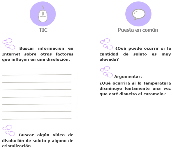Buscar situaciones cotidianas en las que esté patente de manera evidente el fenómeno de disolución: cacao en polvo en el desayuno, azúcar en el café, sopas de sobre, sal en la comida, etc.