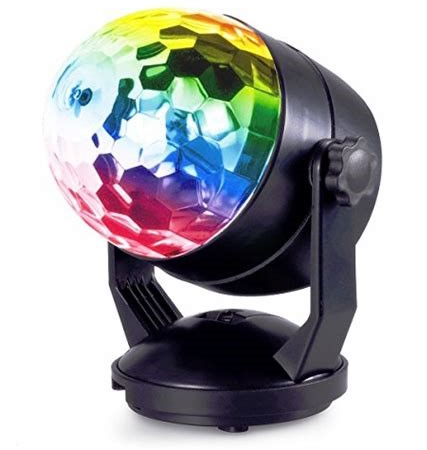 El profesor lleva al aula la bola de luces para fiestas de la imagen de abajo y la pone en funcionamiento con la clase oscurecida. Los estudiantes se fijan en las paredes y objetos de la misma.