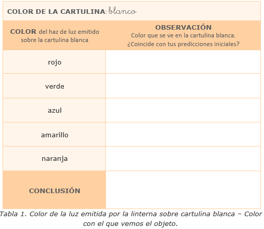 Además de la cartulina blanca, cada grupo puede utilizar otra cartulina del color que desee: verde, rojo o azul.