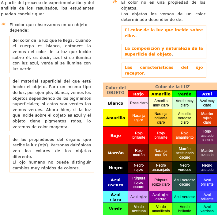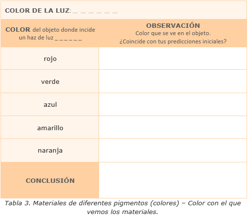 Cada grupo puede hacer incidir sobre el objeto un color de la luz que desee: verde, blanco, rojo o azul.