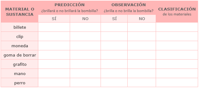 Utilizar la simulación interactiva PhET para rellenar la siguiente tabla.