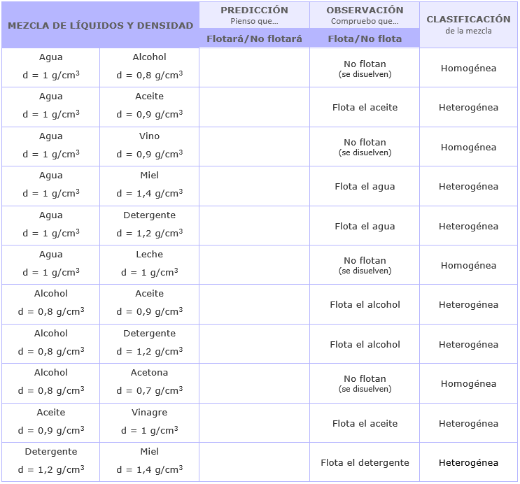 Se puede mostrar a los estudiantes múltiples posibilidades de elaboración de una columna de densidades multicolor a través de vídeos explicativos. El profesor les presentará el siguiente vídeo: