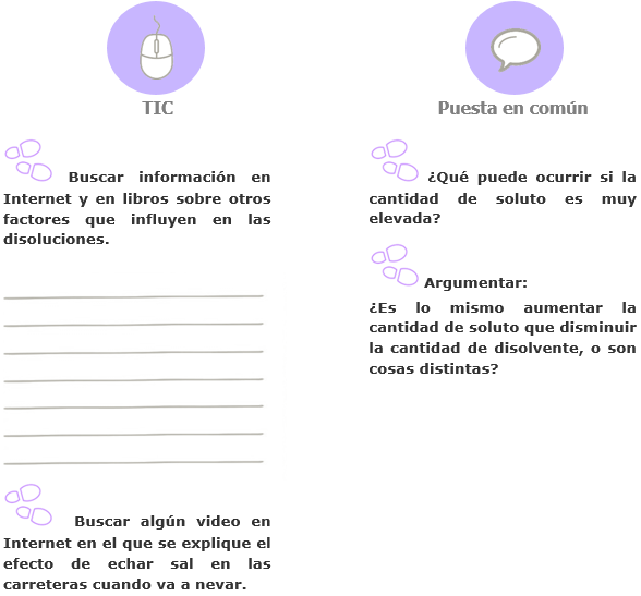 Observar y razonar situaciones cotidianas en las que está presente el fenómeno de disolución: sal en agua hirviendo, sal en las carreteras o calles cuando nieva.