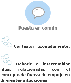 Formular preguntas a los estudiantes para reforzar el concepto de fuerza de empuje.