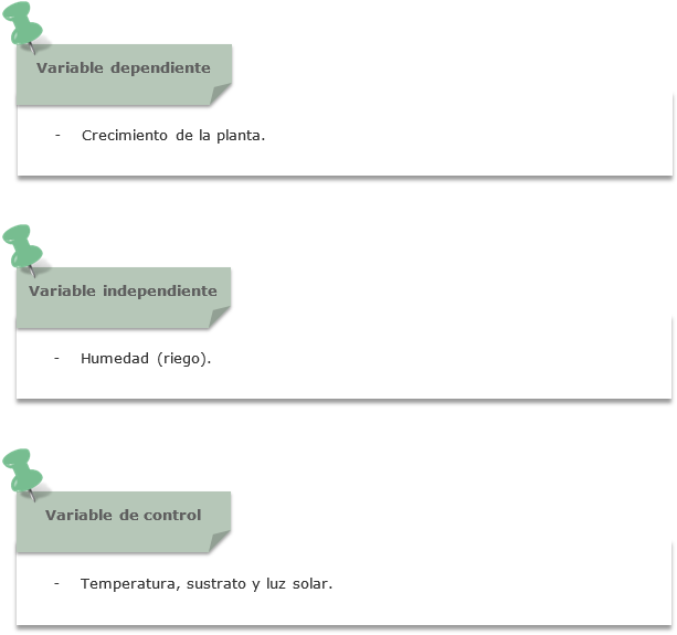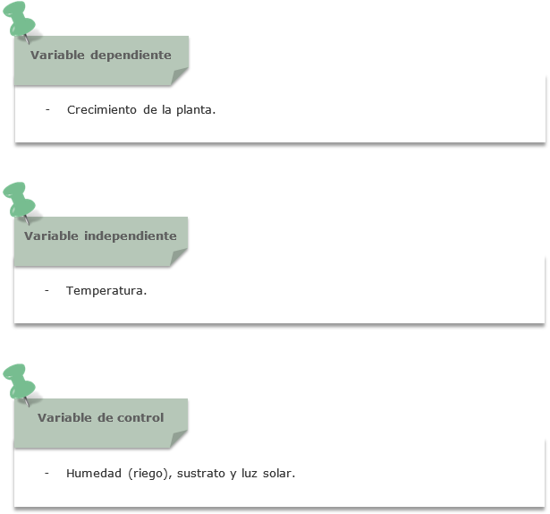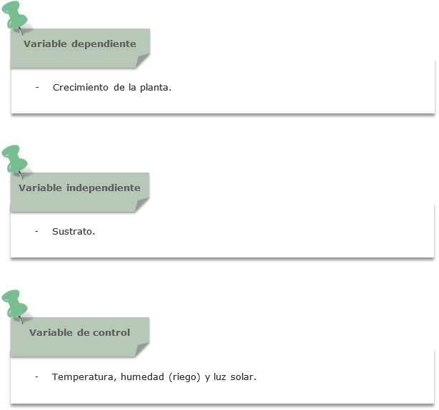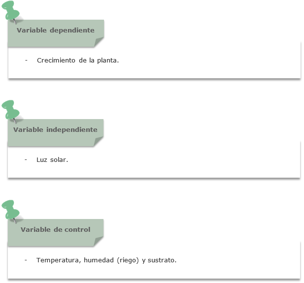 - A partir de que la planta ya ha germinado, se consideran para estudiar su crecimiento las variables: temperatura, humedad, sustrato y luz solar.
