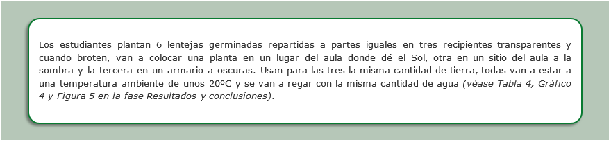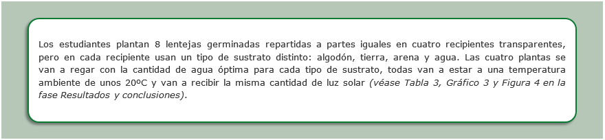 - Para llevar a cabo esta indagación, se parte de considerar que se dispone de semillas que han germinado en algodón húmedo y que luego se plantarán en el sustrato que se elija.