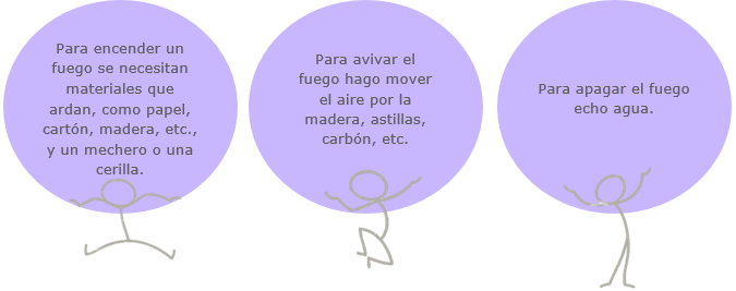 El docente debe guiar a los estudiantes para que entiendan que para que se dé la combustión es necesario el oxígeno del aire. Además, les tiene que hacer ver que si usan una cerilla o un mechero, están haciendo un fuego para encender otro fuego. En este caso se podría preguntar: ¿qué es necesario para encender una cerilla o un mechero?