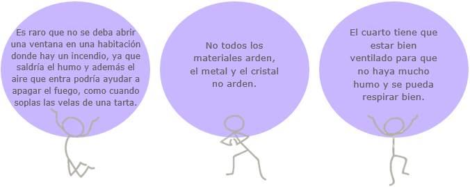 Ayer, mientras iba al colegio en el coche con su padre, Pedro escuchó parte de un programa de radio en el que daban consejos para ser unos buenos scouts. En concreto, le gustó cuando hablaron sobre cómo encender un fuego, avivarlo, extinguirlo, controlarlo y tomar precauciones para que no se produzca espontáneamente. También, le resultaron muy interesantes los consejos sobre prevención de incendios. En el programa dijeron que no se debe abrir una ventana en una habitación donde se está produciendo un incendio, que hay sustancias que pueden arder e incluso inflamarse con facilidad, que hay que alejar a estas sustancias de los focos de calor. Sin embargo, también advertían sobre la importancia de tener siempre bien ventilado un cuarto en el que haya algún tipo de calefacción por medio de combustión, por ejemplo, una chimenea o un brasero. Pedro no entiende muy bien estos dos consejos, ya que le parecen contradictorios. ¿Podrías ayudar a Pedro a comprender los incendios? |