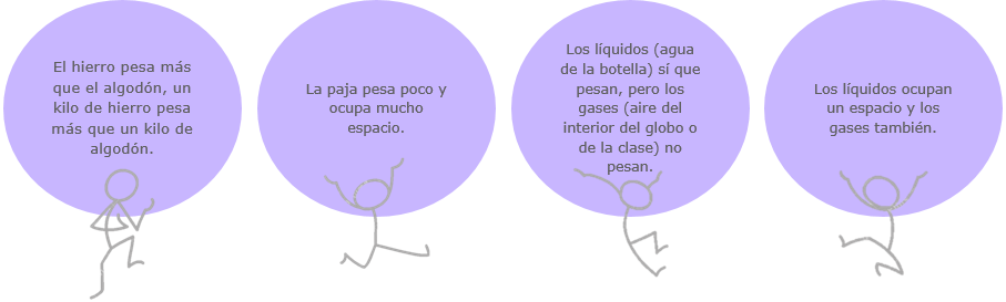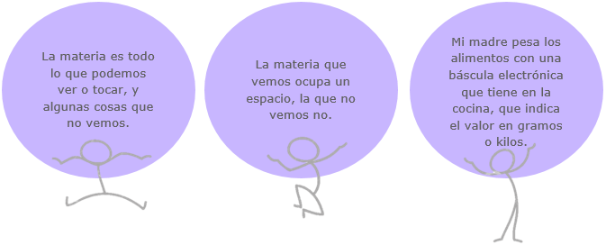 En el aula de sexto de Educación Primaria hay muchos objetos de diferente tamaño, forma, peso, estado de agregación, color, textura, elasticidad, etc. Además de los típicos y necesarios muebles, libros, objetos para escribir o pintar, también hay un botiquín para curar heridas, un pequeño frigorífico, globos colgados del techo y un armario con utensilios y productos de laboratorio. Nuria, profesora de la clase, al iniciar el tema de la Materia y sus propiedades manda uno a uno de los estudiantes que cojan un objeto distinto del aula. La mayoría eligen objetos sólidos, sin embargo, Rosa elige una botella de agua, Enrique agua oxigenada del botiquín, Sara alcohol y Rodrigo un globo. Todos los objetos escogidos por los alumnos son diferentes, incluso algunos están constituidos por distintos materiales o sustancias y en distintos estados de agregación, pero también tienen algo en común, los podemos ver y tocar. Nuria les dijo que todos los materiales y sustancias son MATERIA. Lara, alumna muy curiosa y reflexiva, que eligió un frasco con sal del armario, observando los trocitos de sal que tenía encima de la mesa se quedó pensando si también podría haber sustancias más pequeñas que no pudieran ver ni tocar. Pensó que sí, pues sabe que hay virus, microbios y partículas muy pequeñas que no podemos ver ni tocar y que forman las distintas sustancias. Nuria les explica que, efectivamente, hay materia que no vemos y no tocamos, y que tocándola no la sentimos. Propone a los estudiantes que piensen en dos características comunes de la materia, pensando tanto sobre los objetos que han visto y elegido como en otros que no han visto y también están en el aula. |