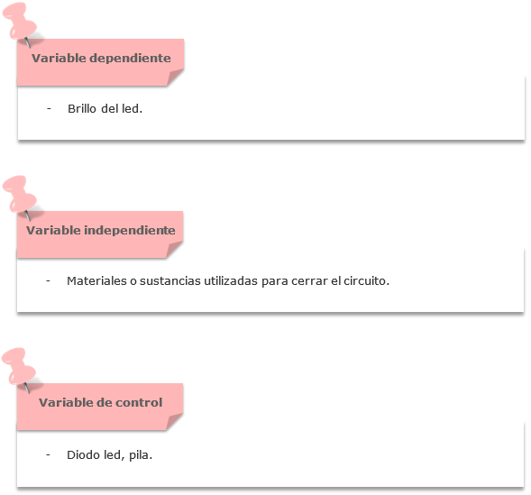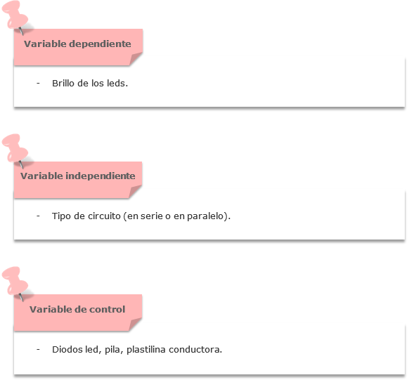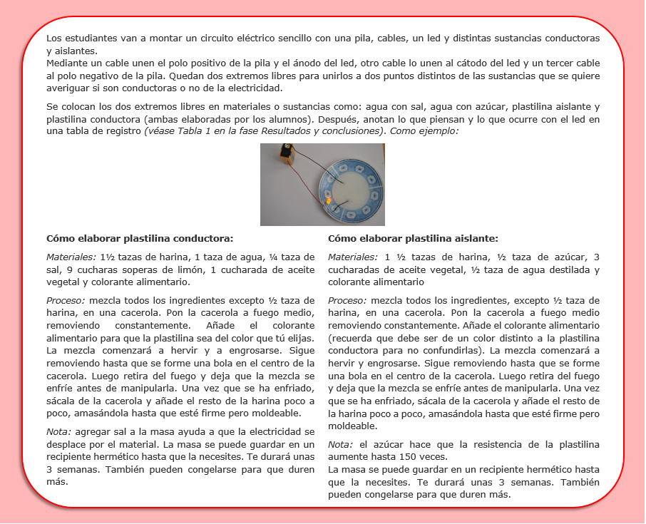 - Todos los experimentos están hechos con pilas de 9V, ya que debido a la resistencia de los materiales utilizados para hacer las conexiones (agua con sal y plastilina conductora), es posible que con pilas de menos voltaje los elementos del circuito no funcionen.