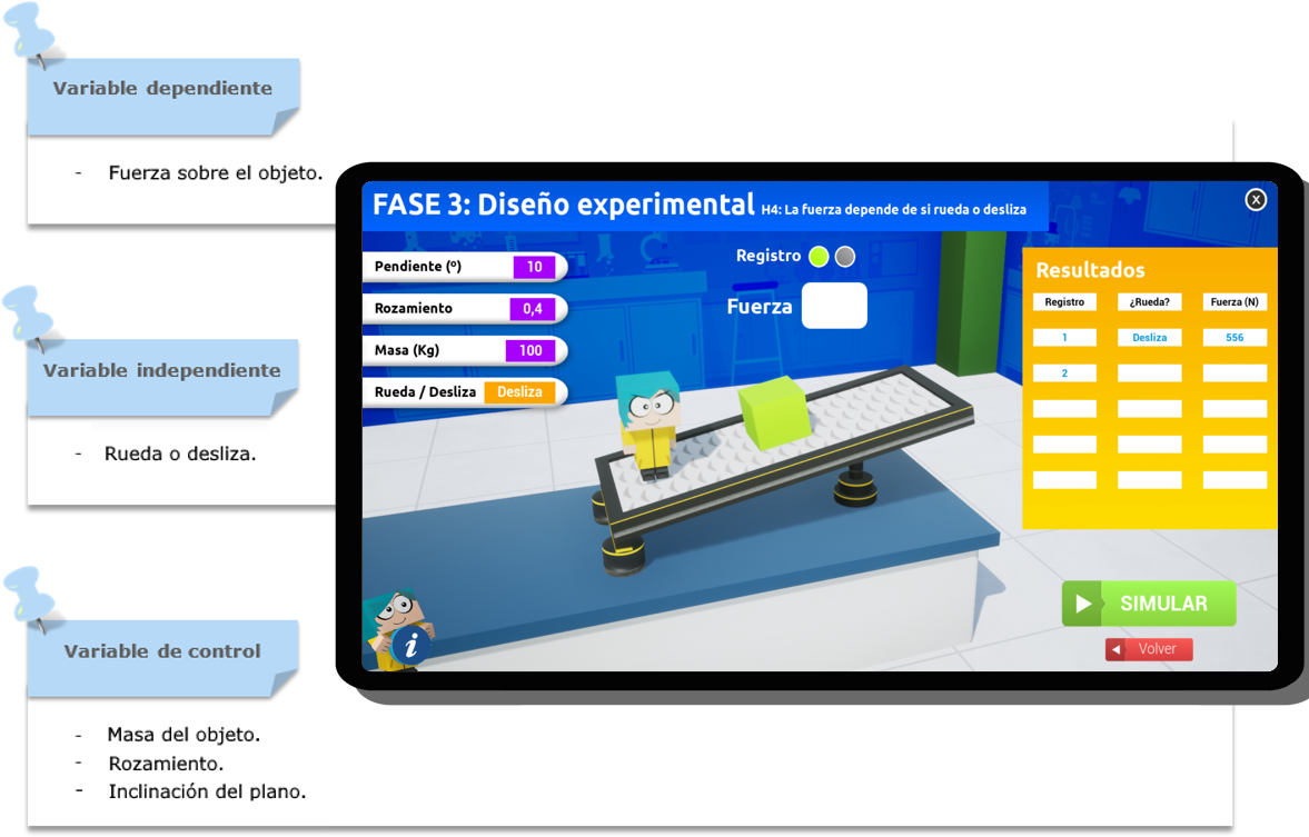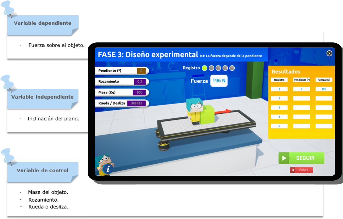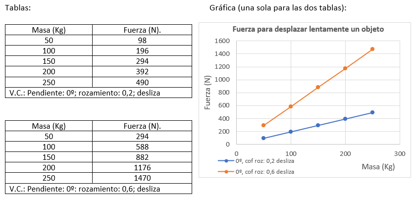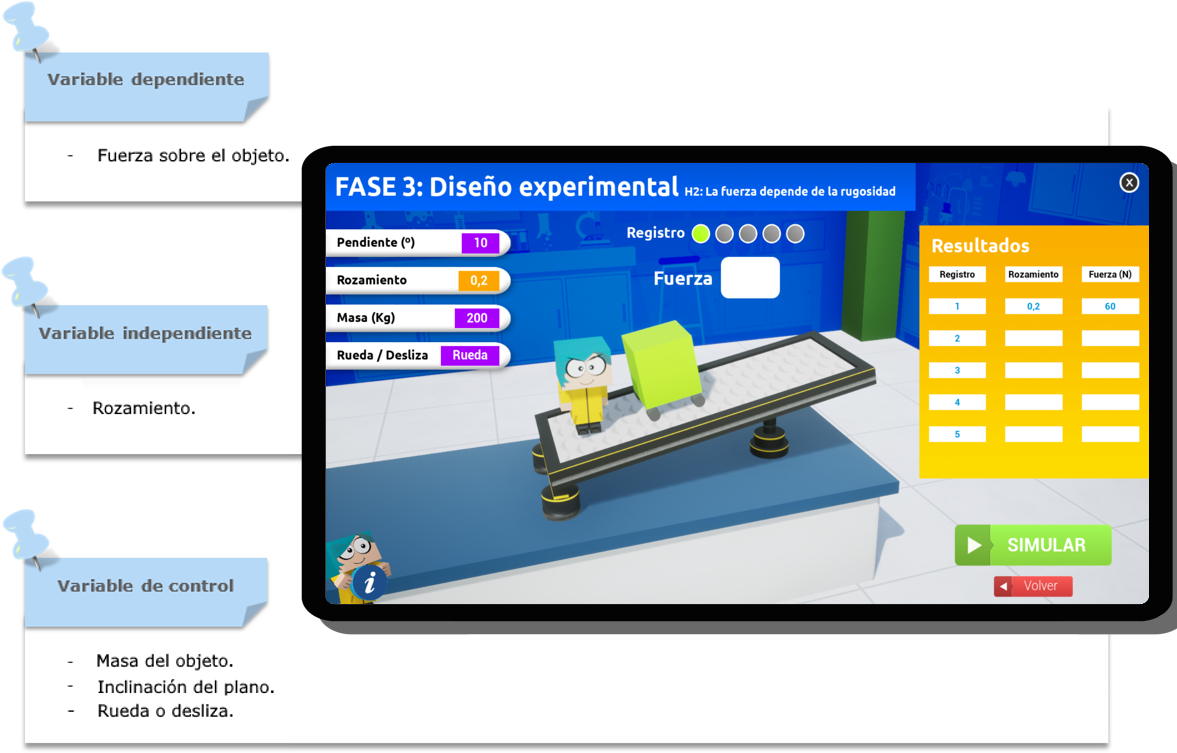 Contrastar la hipótesis 4 - Experimento 4 - Variables 4 Utiliza la simulación de la indagación 3: Fuerza de IndagApp y elabora una tabla con cinco valores de la variable independiente y los resultados de la variable dependiente. Realiza también la gráfica correspondiente: