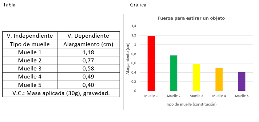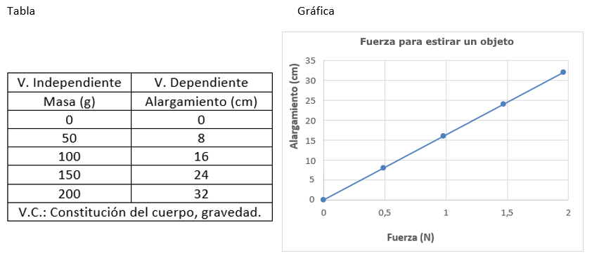 Utiliza la simulación del laboratorio virtual en la web Educaplus y elabora una tabla con cinco valores de la variable independiente y los resultados de la variable dependiente. Realiza también la gráfica correspondiente: