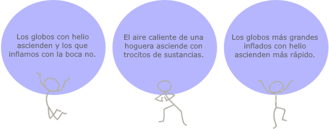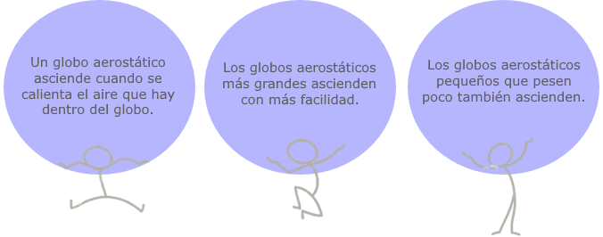 Efectivamente, ensayando con distintos tamaños y pesos de globos y calentando el aire interior del globo, tuvieron éxito y consiguieron elevarlos a cientos de metros. Por fin, en 1783, los hermanos Montgolfier lanzaron con éxito un globo al cielo de París que recorrió unos 20 kilómetros. Así surgieron los globos aerostáticos. A continuación indagarás sobre las variables que influyen en el movimiento de ascenso o descenso de un globo aerostático. |