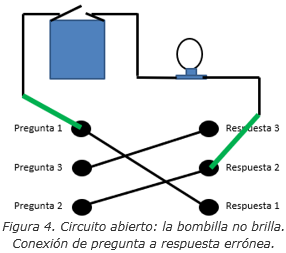 - Si se conecta el cable 2 a una respuesta errónea, entonces el circuito quedaría abierto (véase Figura 4).