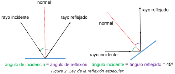 “Para que un rayo o haz de luz reflejado sea perpendicular al incidente, la dirección de este debe formar un ángulo de 45º con el espejo”.
