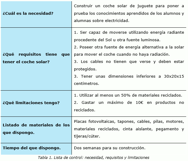 En indagaciones previas, los alumnos han trabajado en clase conceptos de electricidad, han realizado circuitos eléctricos utilizando pilas, motores, bombillas y cables y también han utilizado placas fotovoltaicas indagando sobre su uso para obtener energía eléctrica. Los alumnos tienen los conocimientos científicos necesarios para montar el circuito con los componentes necesarios para proporcionar energía eléctrica a un sencillo coche solar de juguete utilizando pequeñas placas fotovoltaicas.